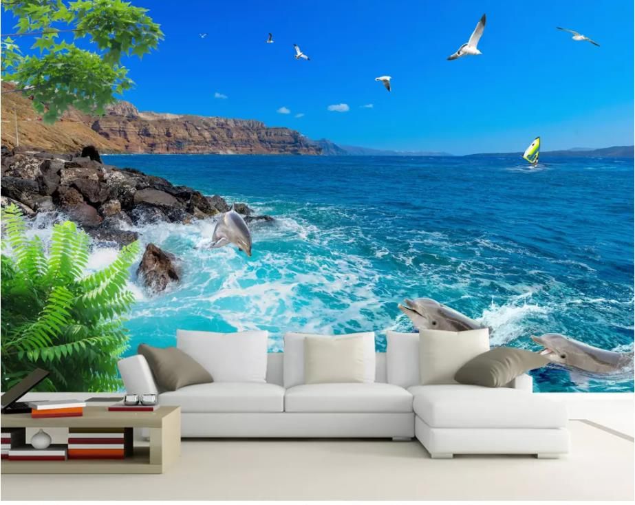 Modern Living Room Wallpapers Blue Sky Sea Tree Seagull Living