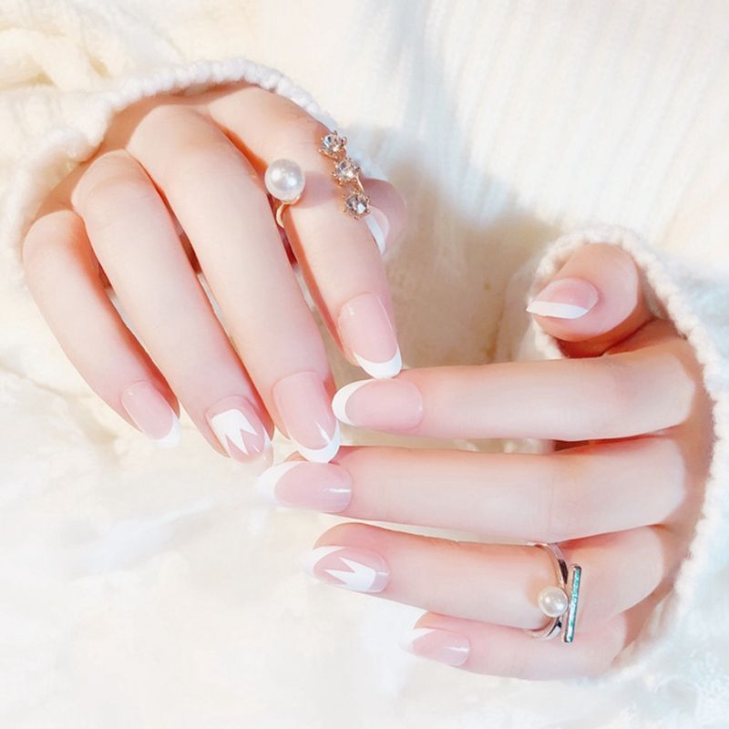 Natural False Nails With Designs Acrylic Round French Nail Art