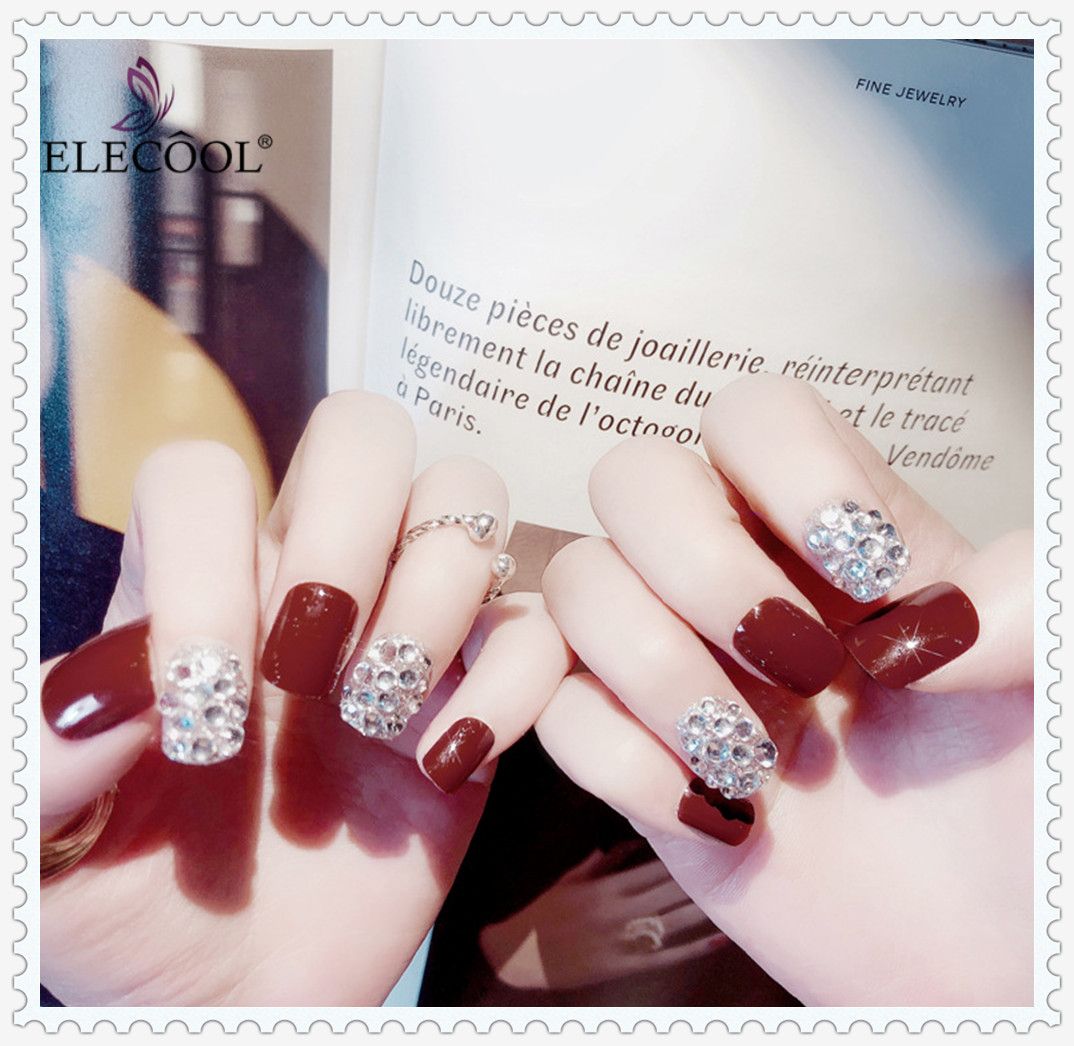 2018 New Shiny False Nails Red With Diamond Nail Art Diy Design
